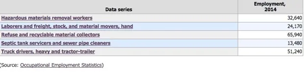 劳工统计局尽管增长迅速,但根据报告,这些工作也迅速成为最危险的工作之一。在2011年至2013年间,17名回收工人在工作中死亡,而2012年他们的非致命伤害事件发生率为每100名工人8.5——高于废物管理和修复工作的一般伤害率,即每100名工人5.1。