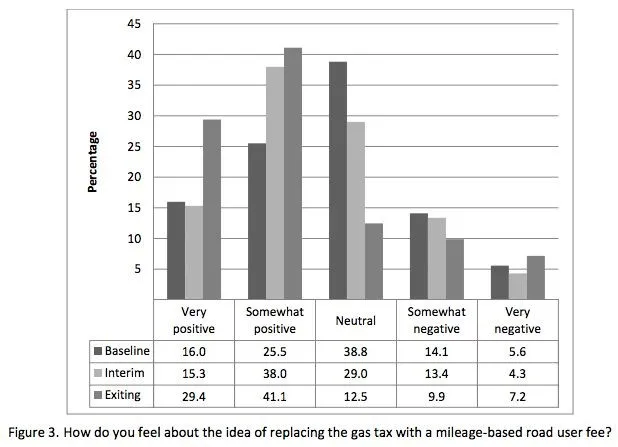 俄勒冈州已经开发、测试并改进这一概念多年。而且它并不孤单。其他地方的试点在全国各地都取得了成功。一项爱荷华州的试验发现,车辆追踪器可以捕捉到绝大多数实际行驶的里程(92%)。在萨克拉门托和华盛顿特区的模拟实验,以及亚特兰大和西雅图的实际试验,显示每英里税收可以减少汽车出行。波特兰的一项研究表明,当包括高峰时段附加费时效果最佳。