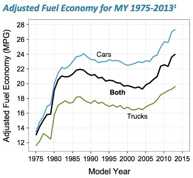 燃油税是汽车旅行的一个不错的代理指标:在大多数情况下,你在加油站花的钱越多,你在路上驾驶的时间就越长。但随着美国汽车变得更加节能,这种关系变得越来越弱。这意味着在平均一箱油的情况下,今天的汽车对道路造成的损害远远超过过去。
