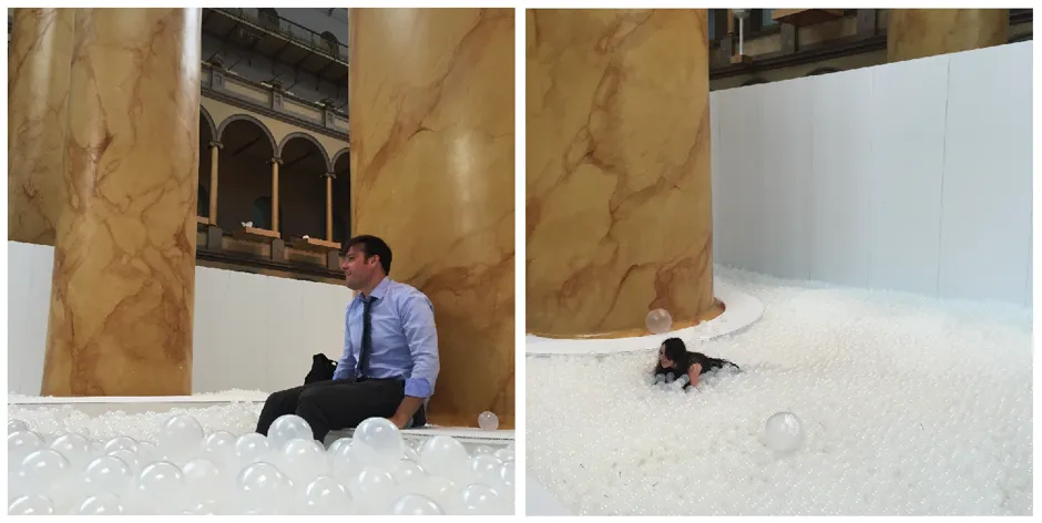 国家建筑博物馆的官员指出,Bjarke Ingels说服他们与Snarkitecture合作举办这个展览。我怀疑这需要强力推销。显然,这需要大量的规划:数十万个球中有一小部分上印有名字,像奖品一样,表明它们是赞助的。不过,这个夏季系列仍然显得有些不成熟、不完整。博物馆的框架可以更正式一些——而且这样也不会减少乐趣。