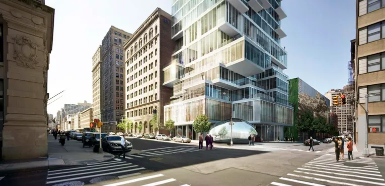 56 Leonard的渲染图,由Herzog & de Meuron设计,目前正在纽约的Tribeca社区建设中。海因斯当青少年时代的故事被铭刻在石头上时,关于人们生活的部分将包括许多令人颤栗的章节标题:短款上衣、自拍杆、分享大大小小的盘子。但2010年代住房部分只有两个因素:堆叠和提升。