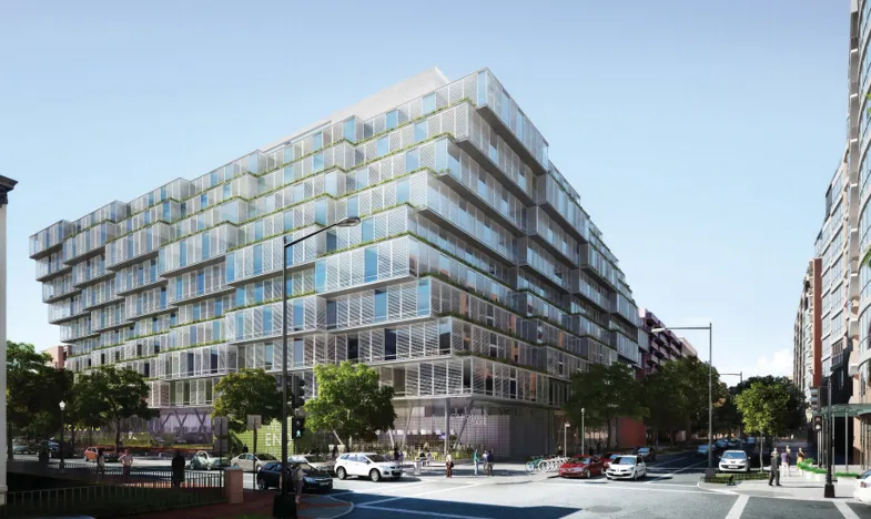 这个由Ten Arquitectos设计的多功能项目,包含西区公共图书馆和市场价住房单元,方方正正。Eastbanc不言而喻,积木形式并不仅仅是华盛顿特区的特色。叠加建筑对于这个城市来说是合理的,因为许多开发机会都是填充项目,建筑师可以利用各种巧妙的悬臂结构从小建筑占地中获得更多。而当华盛顿特区或纽约的建筑成本如此高昂时,开发商往往会放弃华丽的曲线。