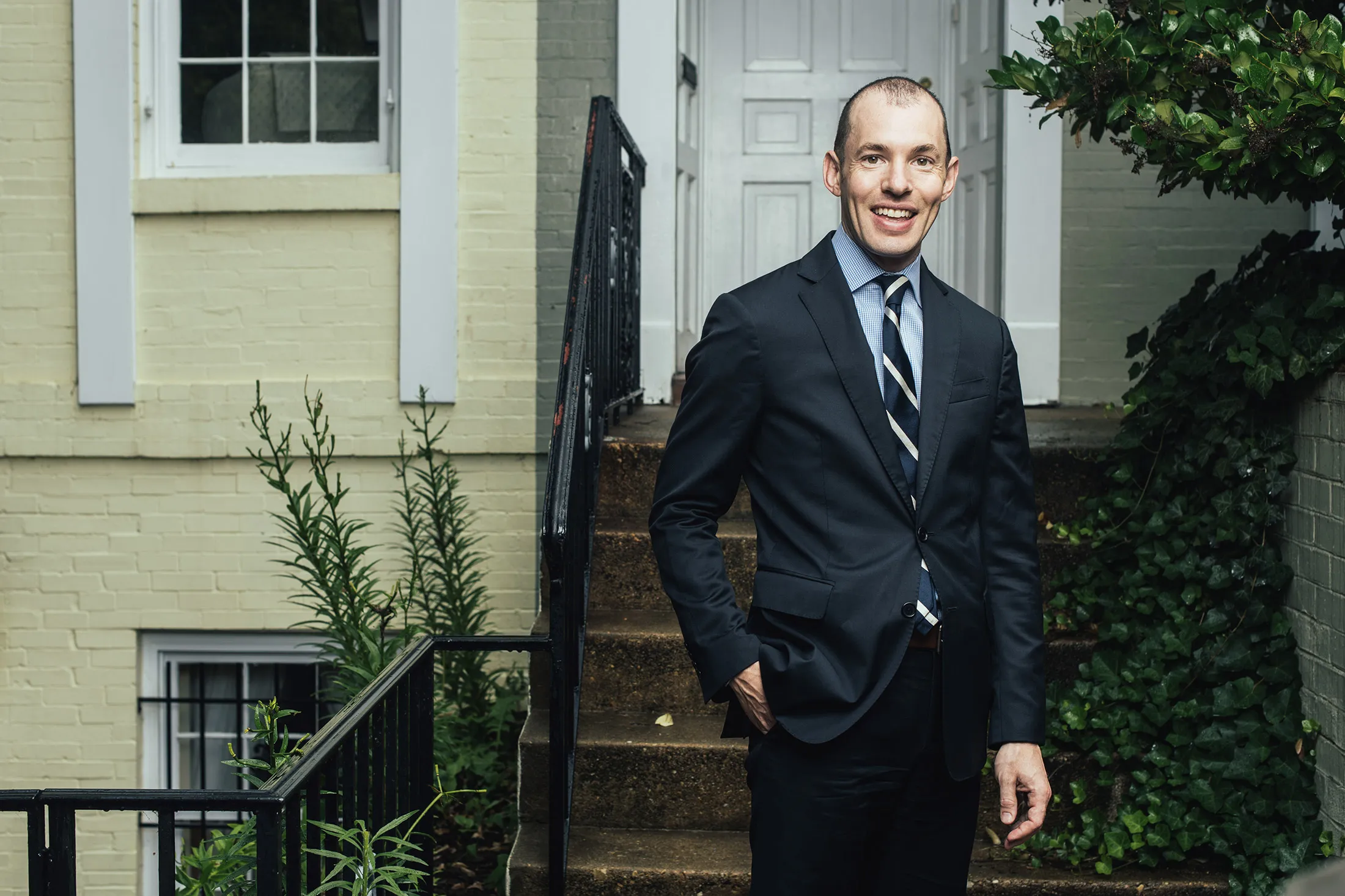 布莱斯·哈泽尔伍德在弗吉尼亚州亚历山大市的Grassroots Targeting办公室外,拍摄于6月30日