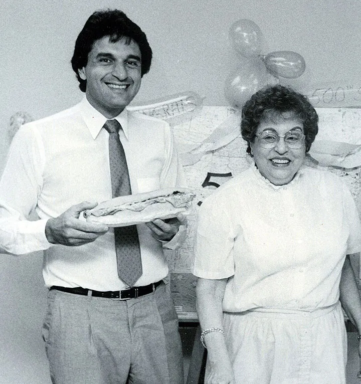 在六月初,一打潜在的特许经营者聚集在康涅狄格州北哈文的保罗·兰迪诺办公室的会议桌旁,听他的推介。兰迪诺热情洋溢,表现得很自信。他在1976年以1000美元的初始费用购买了他的第一家赛百味特许经营店。他的餐厅是第16家,位于附近的汉登。兰迪诺刚刚大学毕业,他经常在晚上喝酒后去第5家店吃长三明治。德卢卡在17岁时开了他的第一家餐厅,招募当地学校的毕业生、朋友、亲戚,有时甚至是顾客来经营这些店。“弗雷德每个月都会来找我们,说,‘嘿,你需要另一家店,’”兰迪诺说。1986年,他成为了一名开发代理人,受赛百味委托开发市场。代理人招募特许经营者,向他们提供运营问题的建议,监控合规性,并在必要时施加纪律。兰迪诺负责监督纽约和康涅狄格州的600家店。他仍然拥有第40家店,正好在他的办公室旁边。