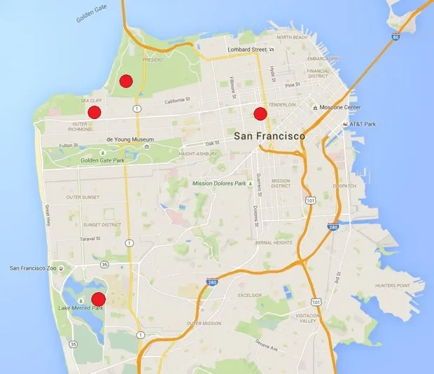 6月30日在西部的Presidio和高档社区Sea Cliff发生了两次目击事件,一台监控摄像头捕捉到了这只顶级捕食者礼貌地使用人行道。然后在7月1日,在Gough街1000号街区又有一次目击——这太疯狂了,因为那正好是在市中心——还有在7月3日靠近梅塞德湖的另一处目击。