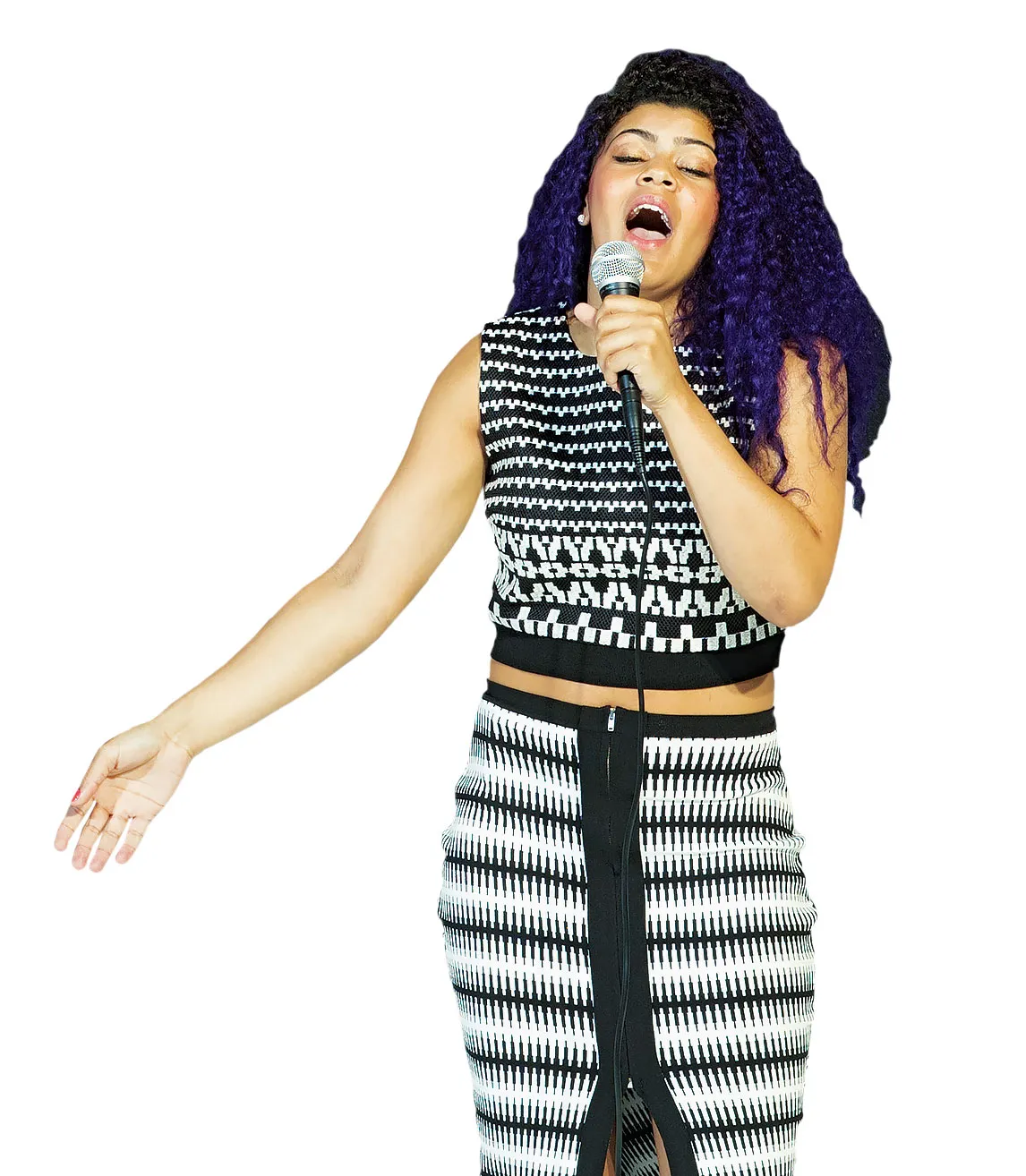 穿着撕裂的白色牛仔裤和露腹的SoundCloud T恤,20岁的托尼·罗米提对着一屋子的陌生人演唱她的一首现代R&B风格的歌曲。她唱得很准,随着节拍摇摆,甩动着她那条长长的、带有品红色条纹的头发。然而,当她结束她的开场曲时,似乎还有些不够成熟的现场表演者的迹象:“那是第一首,”她突然说道。