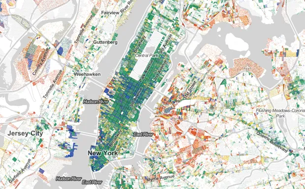 “这种类型的地图在谈论个人时非常有用,”Manduca说,“尤其是在谈论工作时,因为工作的集中程度高于人口。这展示了他们在许多美国城市中的密集程度。”