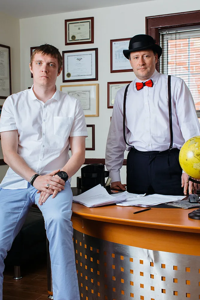 “我知道这很糟糕,”纳斯科维茨说。“我明白这一点。但是在一开始,当你坐在白俄罗斯,年轻且需要钱时……,”他停顿了一下。“你看不到血,你看不到哭泣的人在你面前。你只是按下按钮。” 纳斯科维茨在博里索夫长大,这是一座位于明斯克东北部一个小时的小城市,由他的祖母和母亲抚养长大,母亲是一名护士。他在一所公立学校上学,参加了一个强化英语项目,从6岁到15岁,每周上六次课,包括文学和翻译课程,然后在大学学习金融。22岁时,他在明斯克的一家汽车经销商工作,偶然在地铁上遇到了一个名叫谢尔盖·塞马什科的前同学。他提到有一个需要优秀英语能力的工作机会。
