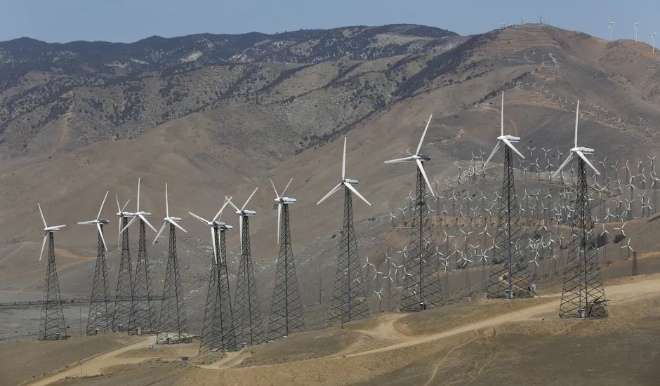 加利福尼亚州特哈查皮的风电场。路透社/马里奥·安祖尼可再生能源在过去一年中非常活跃。加利福尼亚和纽约已经制定了雄心勃勃的计划,要求到2030年实现50%的可再生能源。斯坦福大学和伯克利大学的一组科学家提出了一个更大胆的愿景——鼓励所有50个州到2050年实现风能、水能和太阳能的全面使用,不包括任何核能或生物燃料。纽约市市长比尔·德布拉西奥宣布他也打算让市政府的电力完全来自可再生能源。