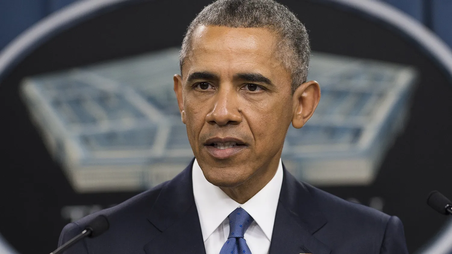 美国总统巴拉克·奥巴马在华盛顿特区五角大楼与高级军事官员会晤后发表讲话,讨论针对伊斯兰国的军事行动,时间是2015年7月6日。