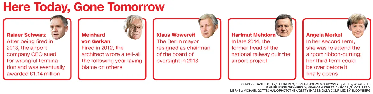 自从施瓦茨和沃维雷特双双辞职的两年里,机场的所有者重新调整了监督委员会,并更换了另一支管理团队。施瓦茨的继任者是一位名叫哈特穆特·梅多恩的矮胖官员,72岁,他是前德国总理格哈德·施罗德的密友。在担任德国国家铁路德意志联邦铁路的负责人期间,梅多恩监督了柏林中央火车站(Hauptbahnhof)的建设,这一过程与冯·格尔坎的合作颇具争议。中央火车站被认为是德国的胜利:“如果所有美国人今天能将柏林奢华的中央火车站与纽约市肮脏破旧的宾州车站进行比较,”托马斯·弗里德曼在2008年《纽约时报》中写道,“他们会发誓我们才是输掉第二次世界大战的那一方。”