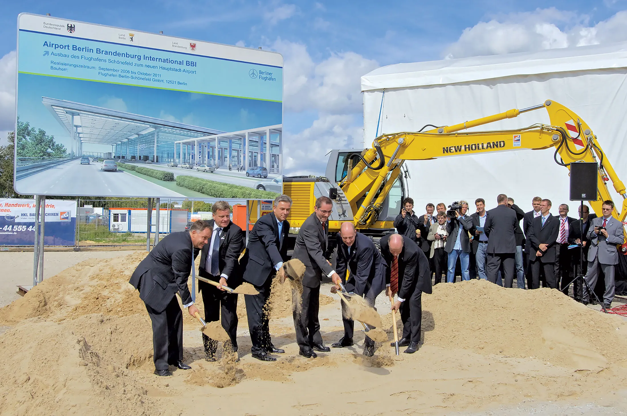 第三位关键人物是施瓦茨,他于2006年被任命为机场管理公司的首席执行官。施瓦茨是一位在美国受过训练的经济学家,曾管理杜塞尔多夫机场,他以削减成本的技术官僚而闻名——正是这个职位所需要的人。在考虑了包括一个前俄罗斯军队基地在内的六个地点后,FBB的机场管理团队于2006年在距离现有舒内费尔德跑道仅几英里的广阔土地上动工。