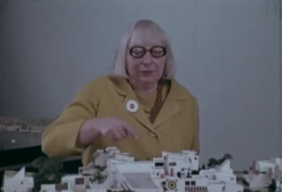 简·雅各布斯指出了她最喜欢的1970年多伦多“港口城市”未建成部分。YouTube/Retrontario经过几十年背对海滨,1970年代的多伦多似乎准备迎来城市规划的转机。城市规划者和政治家们希望,很快将会有50,000人居住在510英亩的人工土地上,称为“港口城市”。