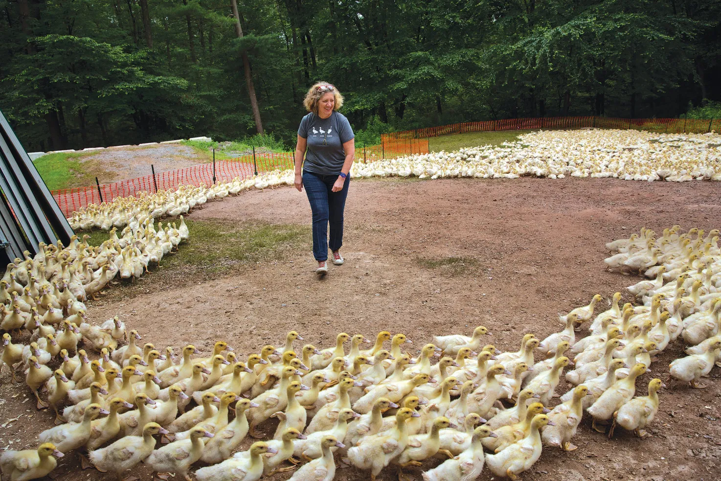 在Cochecton农场,一个位于曼哈顿以北约115英里的5英亩农场,专门为D’Artagnan提供食材,达圭因努力创造更好的鸭子。标准的北京长岛风格品种,在二战后在美国流行,并经过基因改造以更快生长并为农民赚取更多钱,特征是“苍白、糊状的肉,”她说。因此,她花了两年时间将穆斯科维鸭、北京鸭和野鸭杂交成一种她称之为罗汉的新品种。Cochecton的每只鸭子都有3平方英尺的生活空间,约是传统农场的三倍。而且这些鸟被养殖11周,是标准鸭子的两倍。罗汉鸭更肥美、更美味,生产成本至少是标准鸭子的两倍——尽管它们吃的是更便宜的天然饲料,而不是有机饲料。这是一个节省成本的妥协,可能会使有机纯粹主义者感到疏远,但达圭因并不后悔。“养殖决定了味道,而不是饲料,”她说。“我们希望走在潮流前沿,但又不能走得太远,以至于无法销售足够的产品以使其在经济上有意义。这是一门艺术。”