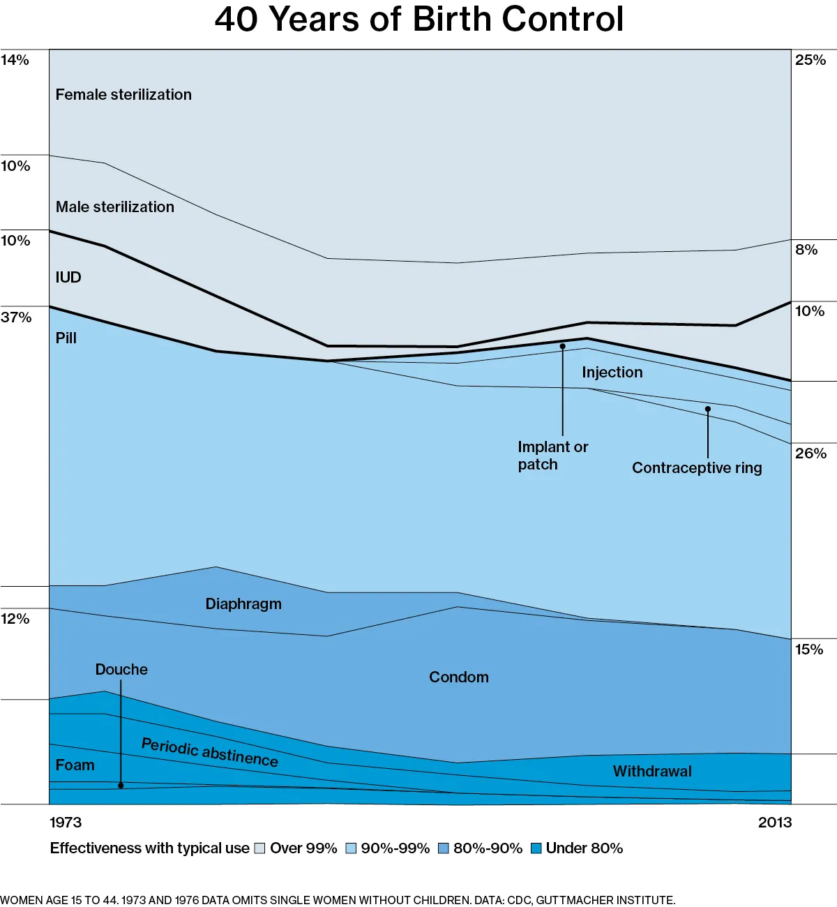 十年前,几乎没有人在美国使用宫内节育器,因为该设备有着糟糕的历史和持续的声誉。然而到2013年,随着女性了解更优越、更安全的设计,宫内节育器已成为选择的方法(PDF),根据疾病控制和预防中心的数据,使用避孕措施的女性中超过10%选择了宫内节育器。在25到34岁的女性中,它们与避孕套一样受欢迎,而且它们的效果更好。根据透明市场研究,2013年美国避孕市场,包括避孕药和宫内节育器,总额超过60亿美元。