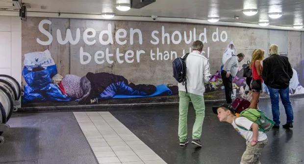 这一误导性的活动展示了穿着罗马服装的睡觉无家可归者的图像,以及“对瑞典这里的混乱感到抱歉”的文字,令许多人感到不安,他们认为这具有排外性和贬低性。一些当地人 坚称这“攻击了我们社会中最脆弱的群体。”昨晚,数千名斯德哥尔摩市民参加了一场 示威活动,之后一群分裂的抗议者进入地铁站,撕下了一些海报。