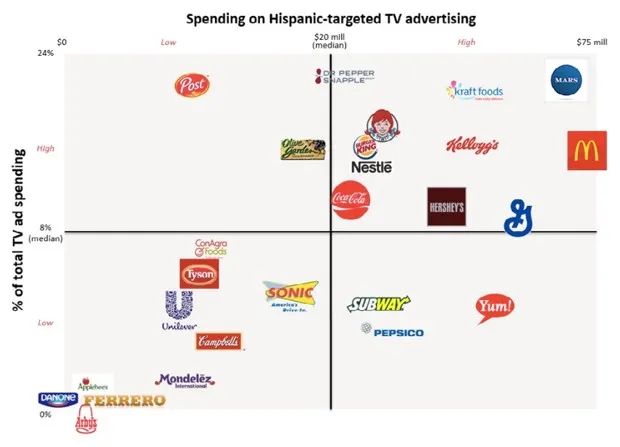 下面的两个矩阵显示了主要公司在向少数族裔广告方面的表现: