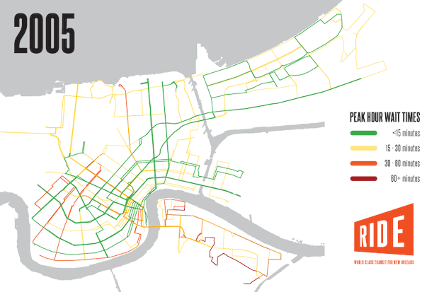 这就是倡导组织 新奥尔良出行 对卡特里娜后公共交通的新评估的尖锐总结。重申2014年7月的一份 报告 认为城市交通“效率低下”、“不公平”和“不可持续”,新奥尔良出行表示,自风暴以来,所有服务中不到一半已恢复——但只有35%的公交服务已恢复,而电车服务已恢复到卡特里娜前的水平。