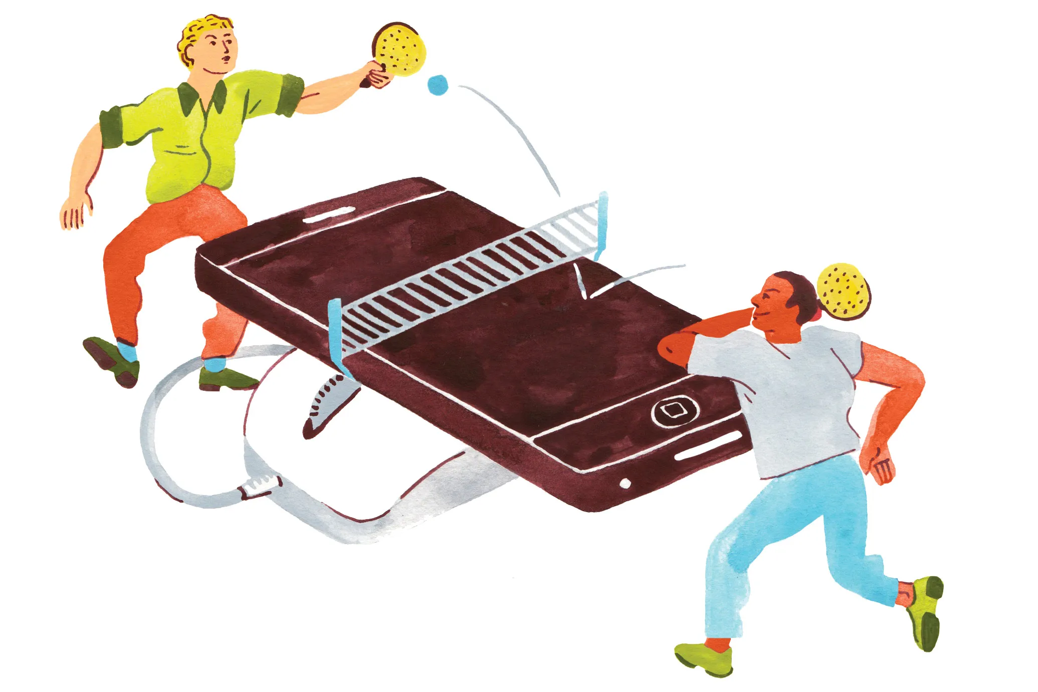 插图:卡里·范德·雅赫为《彭博商业周刊》创作“我们全力以赴地进行全球平台的发布,因此在这些漫长的日子里,我们会一起吃饭、跑步和骑自行车。在八月份,我们有一个夏威夷风情的野餐、一个黑客马拉松、足球和乒乓球比赛,当然,还有我们构建的新功能的展示和分享。”大卫·古尔 交响乐首席执行官