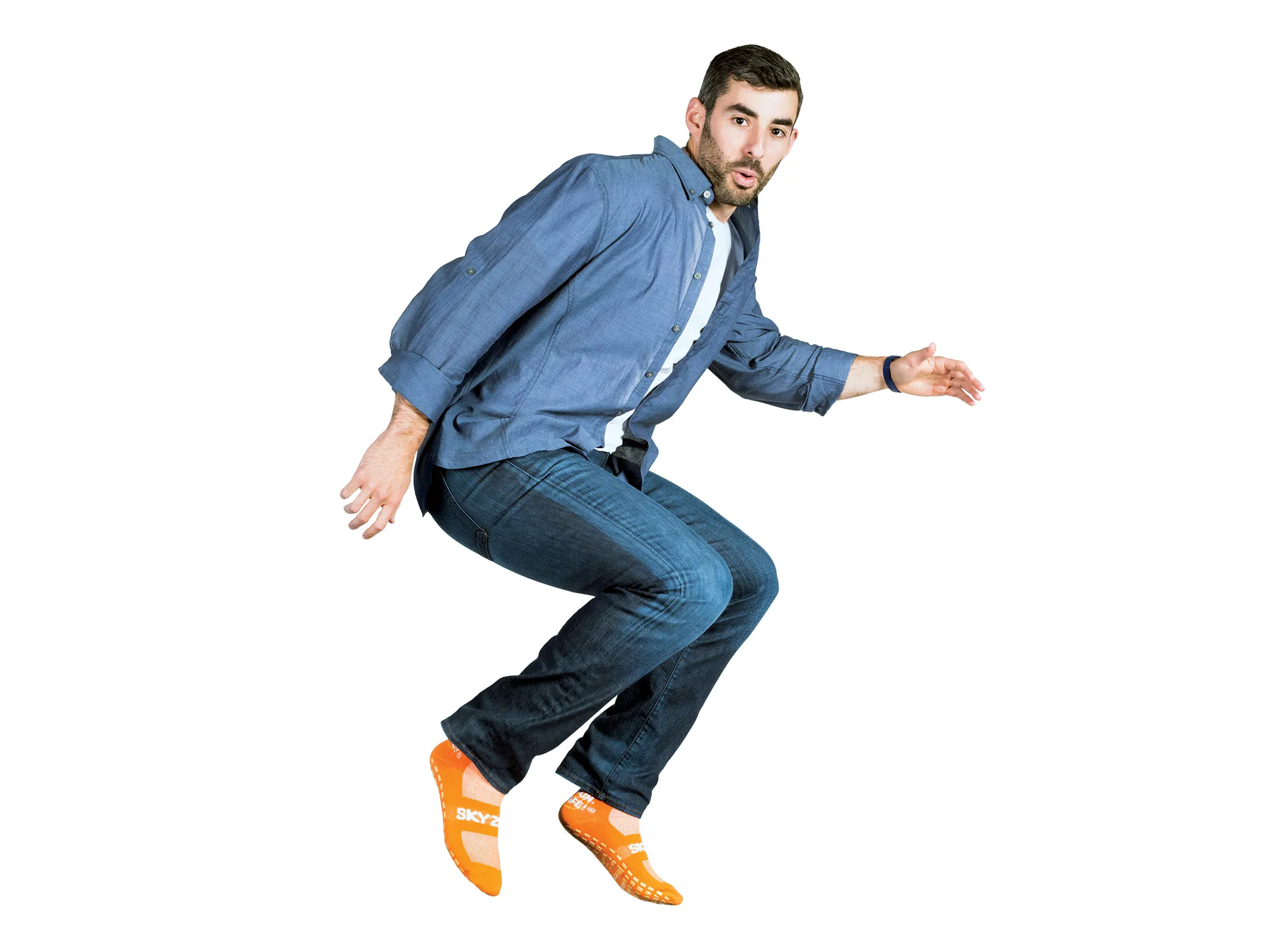 摄影师:丹尼·扎帕拉克为《彭博商业周刊》拍摄“我们向人们收费跳跃,”杰夫·普拉特说,天空区的联合创始人兼首席执行官,他与父亲里克一起创办了这个蹦床公园特许经营业务。顾客按半小时收费,穿上橙色袜子,在天空区的107个地点之一跳跃。这比最初的计划简单多了——创造一种结合足球、冰球和篮球的专业运动,在蹦床上进行。这个计划没有成功,因此普拉特一家将他们在拉斯维加斯的训练设施改造成一个孩子(以及与内心孩子保持联系的成年人)可以跳跃的地方。——凯特·鲁尼采访