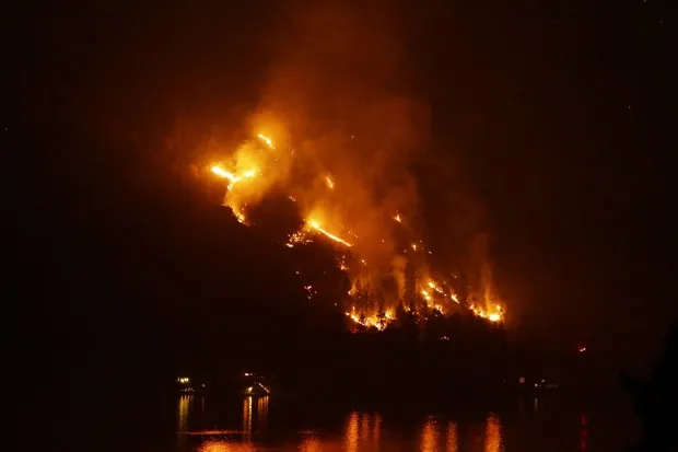 在每小时40到50英里的狂风中,斯波坎保护区的新火焰向北蔓延,冒起一柱烟雾,朝着哥伦比亚河东侧一个约2000人的乡村社区进发。
