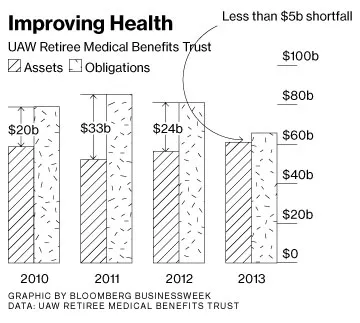 实验在开始时看起来注定要失败。五年前,通用汽车、福特汽车和克莱斯勒在美国汽车工人联合会的支持下,创建了一个独立实体,为超过70万名退休人员提供健康保险,并管理将为这些福利提供资金的投资。此举对汽车制造商有利,使他们能够摆脱在大萧条期间威胁到其复苏的沉重负担。传统观点认为,信托基金很快就会资金短缺,并要求工会退休人员支付高额年费或接受更有限的保障。“人们不相信数学能成立,”当时通用汽车的劳资谈判代表阿特·施瓦茨回忆道。