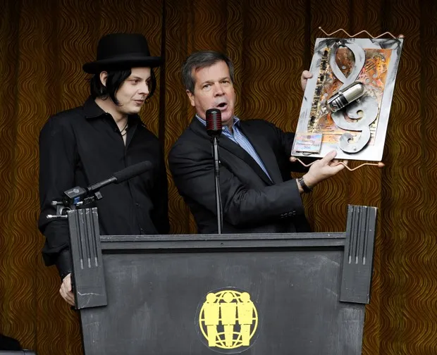 纳什维尔市长卡尔·迪恩在2011年向杰克·怀特颁发音乐城市大使奖。美联社照片/唐·琼斯一些流行音乐界最大的明星来自于三大城市之外。埃尔维斯·普雷斯利来自孟菲斯。U2来自都柏林。席琳·迪翁来自蒙特利尔。阿巴来自斯德哥尔摩。然而,在过去六十年中,前50名畅销音乐艺人中,伦敦占据了15个名额,纽约占据了10个,洛杉矶占据了5个。
