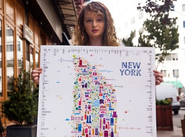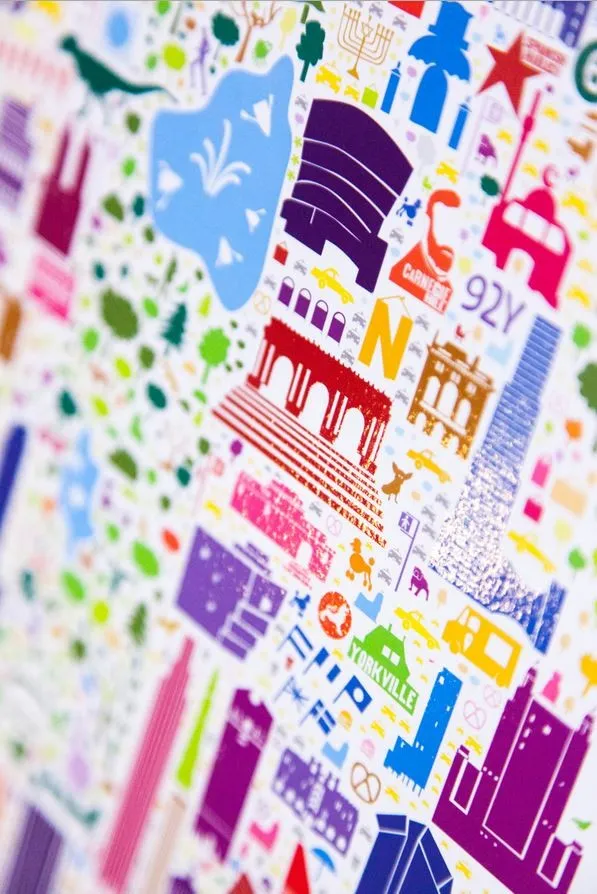 埃斯克尔设计了一款博物馆级别的海报,现在已成为游客和居民们喜爱的纽约纪念品。名为 标志性纽约,他的海报展示了手绘的城市建筑和文物图标,组成了一个充满活力的拼贴,形成了曼哈顿本身的形状。受天真艺术的启发,标志性纽约以其五彩缤纷的色彩和细节吸引观众。“每个人都爱纽约,”埃斯克尔说。“我想要一个美丽的纪念品,传达出纽约也爱你。”