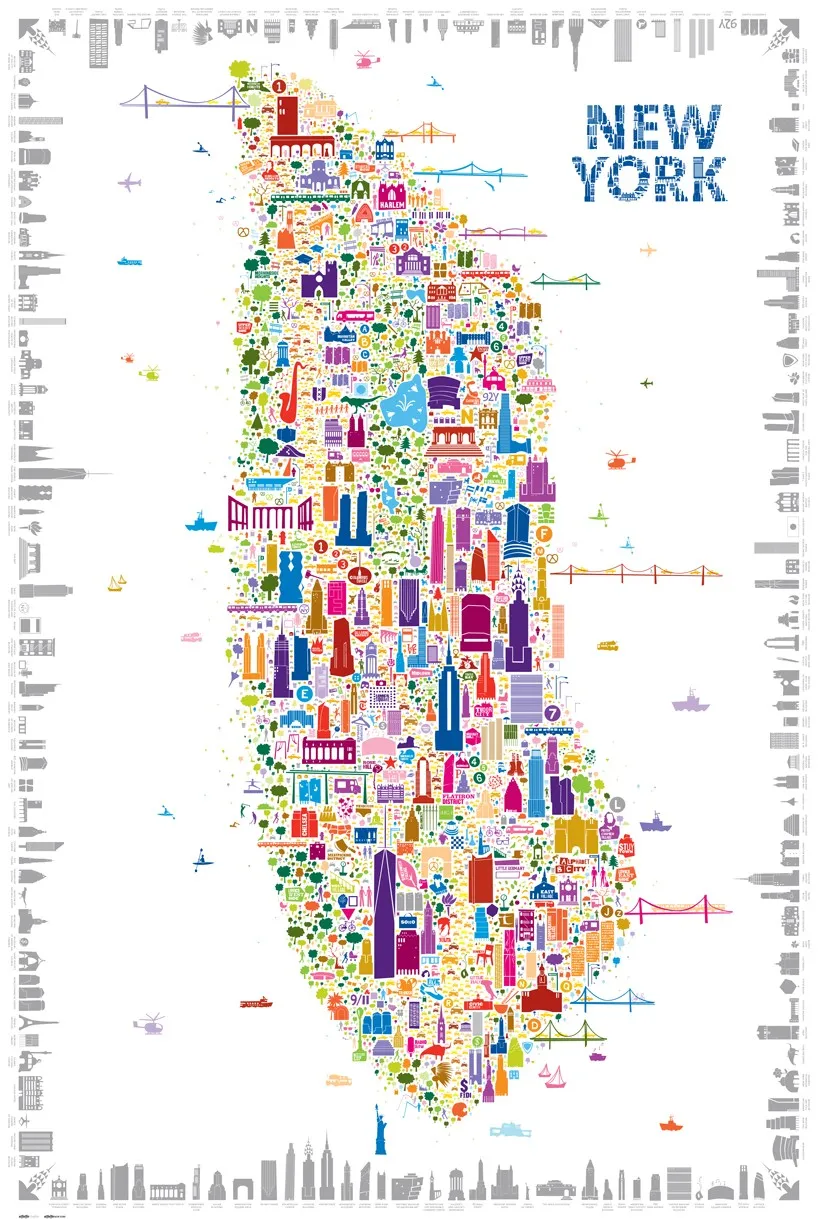 标志性的纽约展示了这些地方传说的珍品以及更多——赤裸的牛仔在时代广场弹吉他,东区的微型狗的祸害。由曼哈顿的 苜蓿工作室制作,这张海报包含了400多个地标,包括173座精心描绘的建筑。苜蓿的拉斐尔·埃斯克尔花费了两年半的时间进行研究和制作,应该能让拥有者享受数小时的凝视和发现。