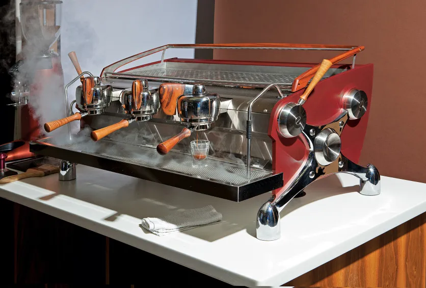 摄影师:Charlie Schuck 为彭博商业周刊Jason Prefontaine 正站在他的公司价值 22,000 美元的 Slayer 意式咖啡机前。这是一台美丽的机器,外观为珍珠般的烧橙色,专为真正痴迷的人而设计。但他认为自己不应该制作一杯浓缩咖啡。他不知道磨豆机里是什么豆,而 Prefontaine 只喜欢制作完美的浓缩咖啡。