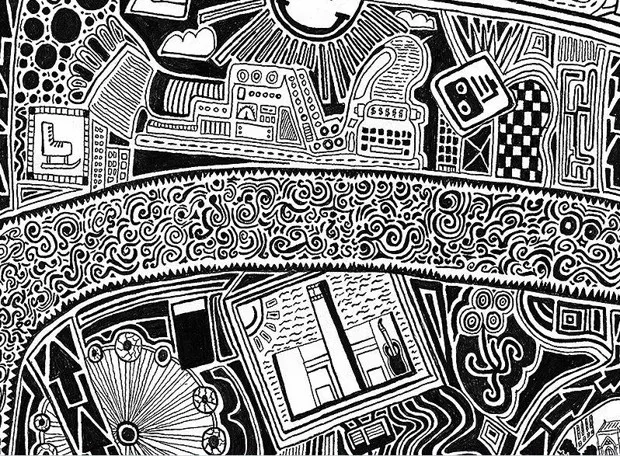 富勒敬畏这张 伦敦 的地图,但不要试图用它导航。这幅笔墨大师之作充满了地标、车辆、生物、双关语、地方参考和神秘符号,你需要的时间几乎和艺术家创作它所花的时间一样——十年——才能完全理解它。