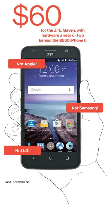在大多数AT&T、Sprint或T-Mobile商店中,找到ZTE手机需要一些时间,因为它们被埋在后面,经过苹果和三星的最新产品。但它们确实在那里。在AT&T商店中是ZTE Maven,它配备了屏幕、扬声器和处理器,其性能介于iPhone 5和6之间。正如ZTE美国零售市场负责人Tony Greco所说:“这些在两年前是最先进的功能。”Maven真正吸引人的地方是价格。在没有无线运营商补贴的情况下,这款手机仅售60美元。而且它甚至不是该公司最便宜的型号之一。