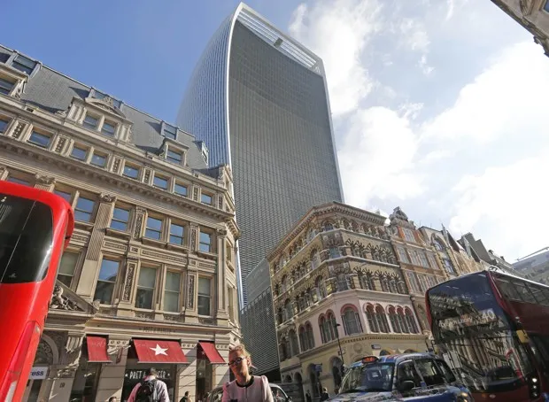 伦敦的“对讲机”大楼,左侧。美联社照片/弗兰克·奥古斯坦说伦敦的“对讲机”大楼自去年八月开业以来经历了严重的波折,真是轻描淡写。