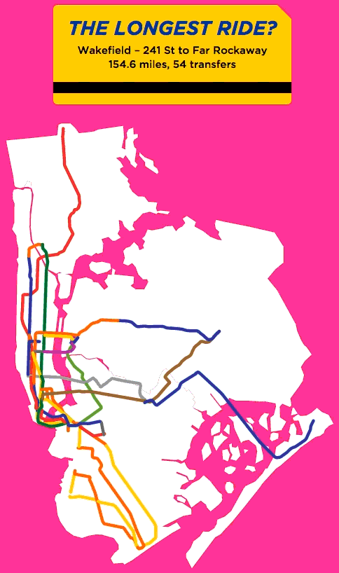 Stockelements/Shutterstock.com从布朗克斯的韦克菲尔德到皇后区的法罗克威,几乎155英里和54次换乘。