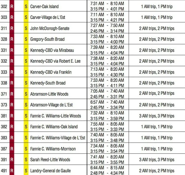 在风暴之前,集中管理的奥尔良教区学校委员会负责学校交通。虽然许多学生步行或乘坐黄色校车,但那些在家园区域外上学的学生从区域交通管理局获得通行证,该局负责城市的公共交通。乘坐公共交通的学生并不是一个微不足道的群体,“在风暴来袭时,几乎占总学生人数的一半,” 根据 时代皮卡尤恩的报道。