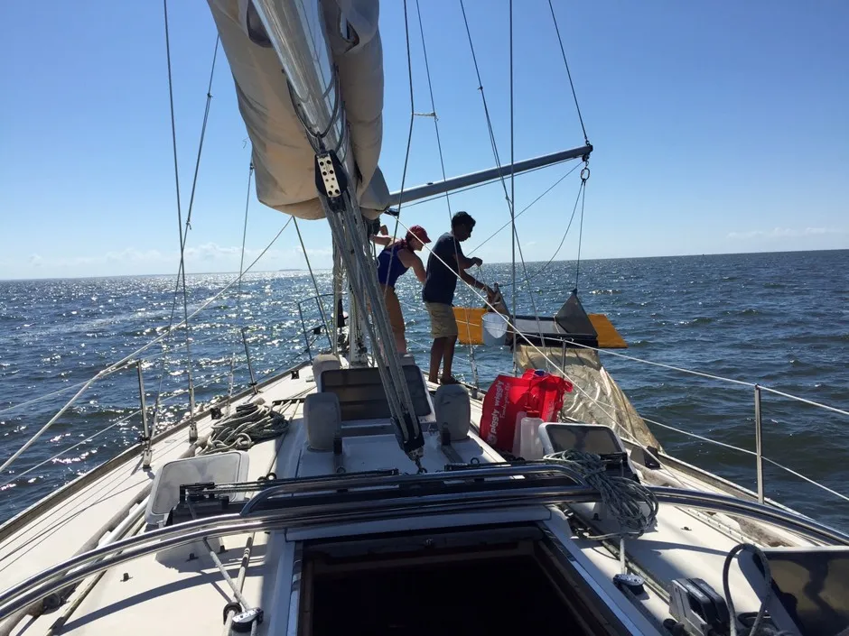 我在星期二的航行中加入了劳森,乘坐一艘42英尺的帆船穿越切萨皮克湾。我们从马里兰州埃奇沃特的假日山丘码头出发。和劳森一样,船员的其他成员(除了我们忠实的船长)都是塑料猎人,或者至少是塑料研究者:斯蒂夫·威尔逊,故事之物项目的活动总监,以及阿南德·潘迪安,约翰霍普金斯大学的生态人类学教授。因此,我们出发去猎捕塑料。