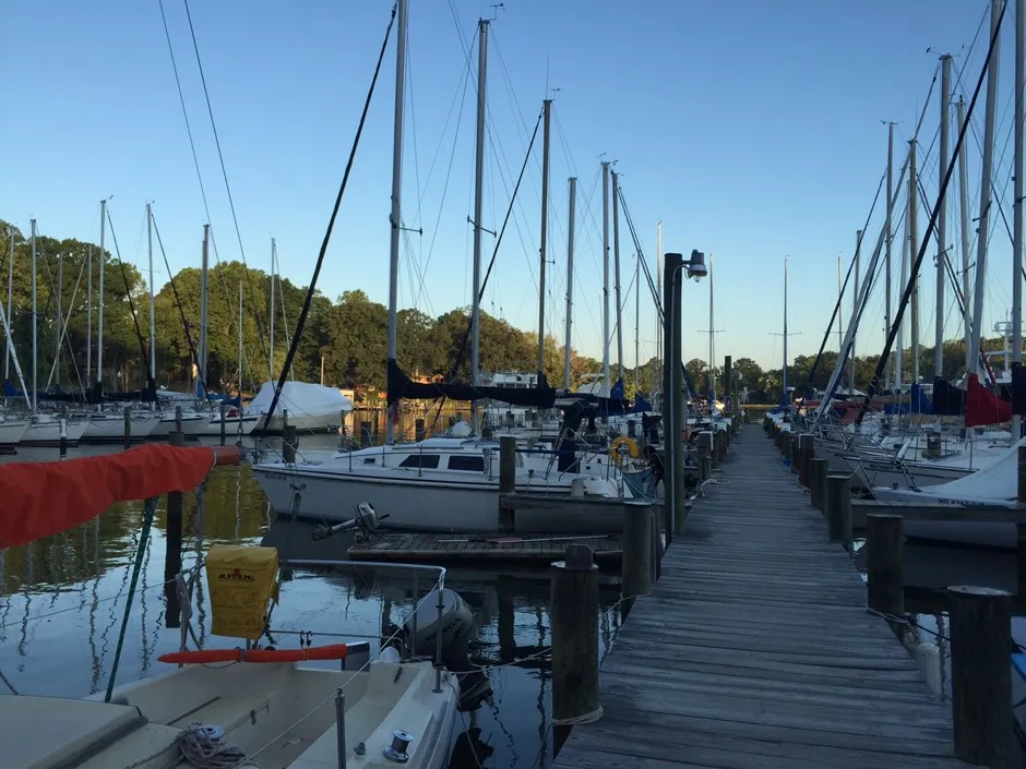 马里兰州埃奇沃特的假日山港,黎明刚过。(所有照片均由作者拍摄)切萨皮克湾——沿着马里兰州西岸的罗德河航行,确实是从漫长的劳动节周末中再榨取一天的幸福方式。切萨皮克湾的水面上飘扬的所有帆船,看起来就像是对夏日氛围的忠诚誓言所升起的旗帜。