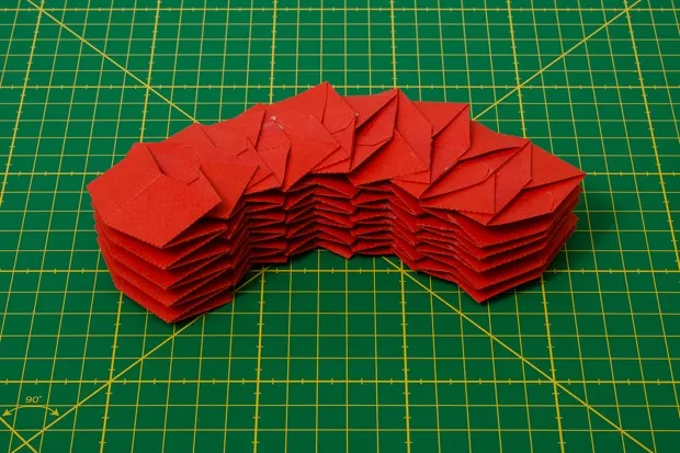 展开后,互锁的管道形成一个坚固且更强的结构。罗布·费尔特/乔治亚理工学院提供“能够将材料存放在一个非常紧凑的空间,然后展开成一个大型功能性3D结构,这是太空探索应用的首要任务,”菲利波夫说。确实,Miura-ori方法是由日本天体物理学家宫浦光洋发明,他试图使太阳能电池板和卫星紧凑且易于运输。