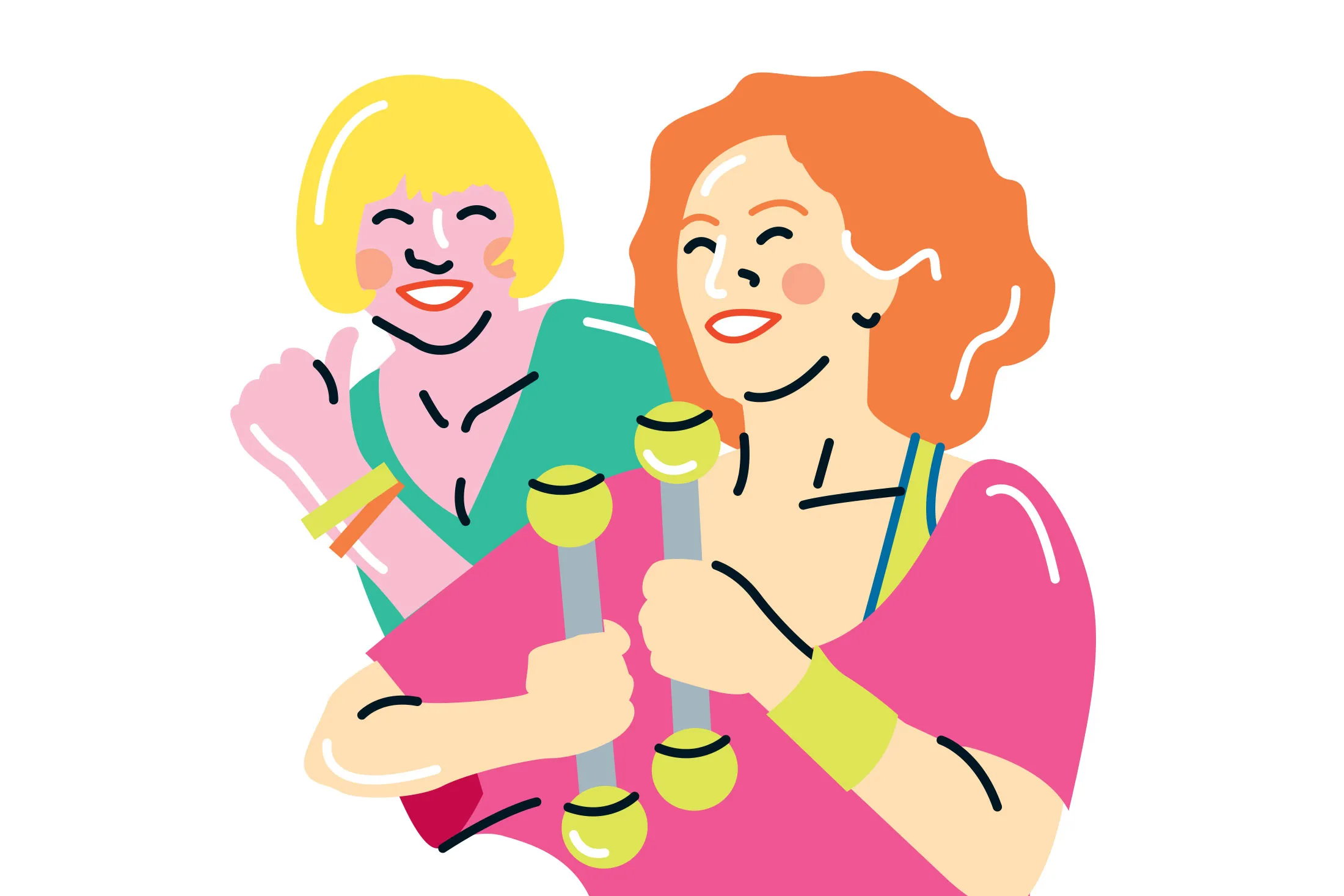 插图:贾西·凯斯勒这是全球各地奶奶们的拉丁流行团体舞,现在在手持1磅或3磅的像沙锤一样的棒子时进行。它们将基本的手臂波动变成二头肌弯举和三头肌伸展。价格不等;zumba.com