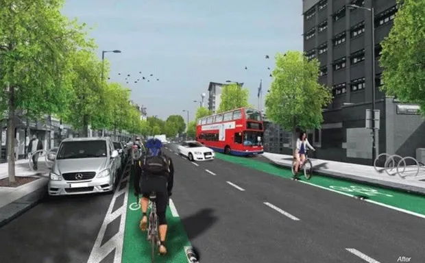 沃尔瑟姆森林交通缓解计划的设计渲染图。伦敦交通局值得庆幸的是,确实有一些真正的变化正在逐渐显现。一条新的典范 自行车高速公路 在伦敦市中心的泰晤士河堤岸已经部分投入使用。当它最终全面投入使用时,将形成一条全保护的超级高速公路,横跨 18英里,从东到西。一个同样受保护的南北路线正在建设中,这将结束伦敦 “最恶劣” 交叉口成为死亡陷阱的日子。
