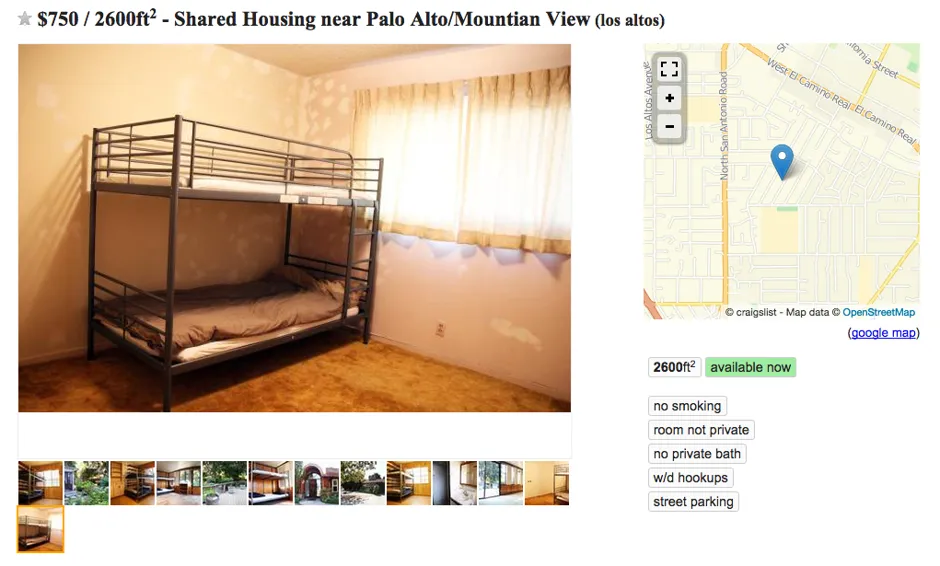 “靠近Facebook、Google、VMWare、LinkedIn、特斯拉……会提供双层床。”Craigslist在高生产力劳动市场中的地方NIMBY主义是一个全国性的问题。如此多的资本投资于满足工人飙升的租金,对经济是有害的。房产拥有者获利,工人受损,非工人甚至无法参与竞争,租户则面临 驱逐 和 系统性虐待。对此危机有解决方案:大幅度上调分区,适当征税房产财富,并为更多低收入居民补贴住房成本。