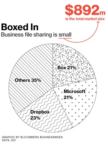 摄影师:大卫·保罗·莫里斯/彭博社无论好坏,Box都是企业文件共享软件的第二大销售商——这是一个竞争激烈的8.92亿美元市场,利润率微薄。尽管Box连续两个季度超出了分析师的预期,并且预计今年销售额将达到约3亿美元,但它也预计将亏损约2亿美元,其股价已跌至1月份首次公开募股价格14美元以下。大多数人使用其软件的免费个人版本,提供10GB的存储空间,而典型的商业用户每月支付15美元以获得无限存储和额外功能,如安全报告和自定义品牌。