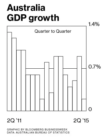 随着中国经济放缓,繁荣已结束,制造业的困境使新总理马尔科姆·特恩布尔的工作变得复杂。9月14日,来自中右派自由党的立法者们选择了前高盛银行家特恩布尔作为他们的新领导人,罢免了总理托尼·阿博特,因为人们担心澳大利亚长期的经济增长面临危险。根据澳大利亚统计局和咨询公司AlphaBeta的数据,第二季度的国内生产总值仅比第一季度增长0.2%,低于经济学家预期的0.4%。失业率为6.2%,接近13年来的最高点。