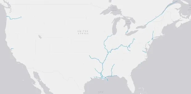 如果你是那种喜欢盯着大船看的人,这些是每年运输750吨或更多石油的内陆水道。加油,密西西比河!