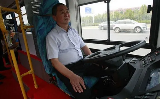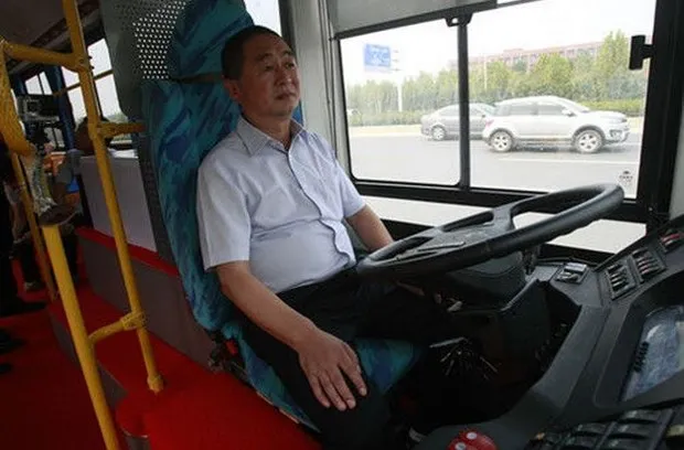 再看看。驾驶座上的家伙正伸展他的手臂,就像他在扣篮一样——也许是在对抗谷歌 和苹果,因为这东西是“世界上第一辆无人驾驶公交车”,制造商宇通如是说。