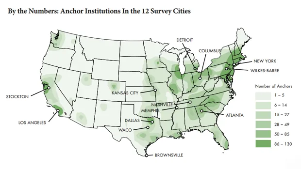 国家资源网络报告基于对全国十几个城市中锚定机构角色的详细研究,包括对数十位社区领导者、锚定机构高管、研究人员和城市规划者的访谈。