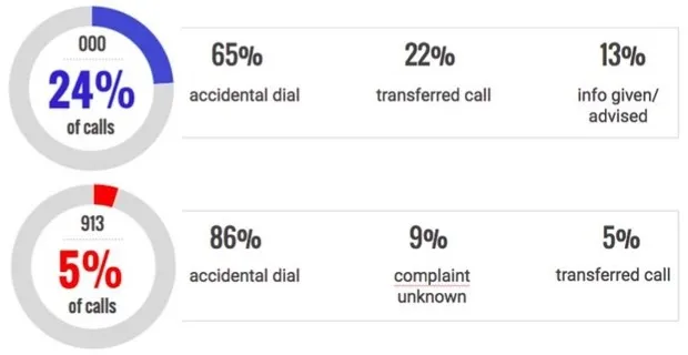 意外拨号已经是一个长期存在的问题——在有线系统上拨打“9”以获取外线,然后在区号之前拨打“1”,但不小心按了两次,导致了长时间的误拨(还包括拨打“11”作为国家代码而不是在拨打“9”后拨打“011”)。最近显著增加的原因是现在常见的手机类型。在触摸屏手机的锁屏上,不小心按到“紧急”按钮是很容易的,而且所有手机都必须能够在合同到期时拨打9-1-1(通常在父母升级后,他们可能会让孩子玩旧手机——如果手机仍有电,它可以拨打9-1-1)。