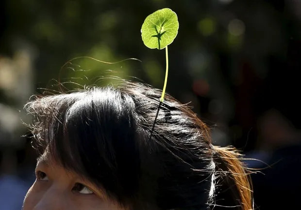 看:我觉得这种植物穿戴的东西不可能是下一个自拍杆。故事甚至指出了原因:现在是国庆节的假期周,所以每个人都在去北京旅行。人们感到节日气氛。把三叶草夹到头上的节日气氛。植物天线是北京的假期呐喊器。