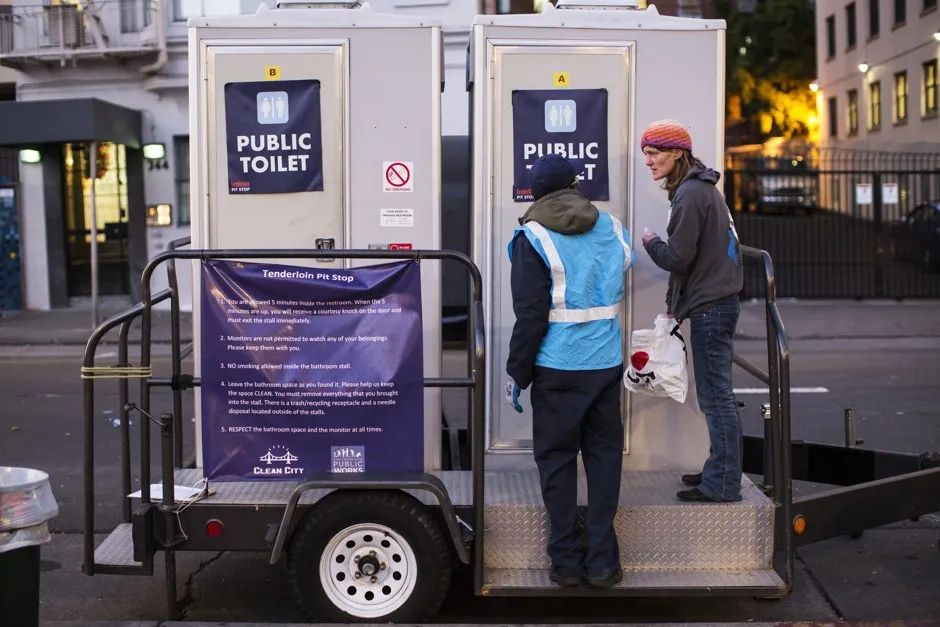 最近,旧金山公共工程局试图通过在Tenderloin和SOMA等地区推出试点“临时厕所”项目来解决这个问题。这些项目为所有城市居民提供移动厕所、水槽和使用过的针头收集箱,以及狗粪处理站。移动单位导致了清理街道请求的减少,但它们仍然面临可用性有限的问题——“临时厕所”仅在周二至周五的下午2点到晚上9点对公众开放。