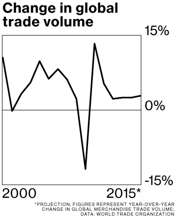 世贸组织确实预测明年的增长将加速至3.9%。这仍然远低于过去20年的5%的平均水平。1990年代和2000年代初,贸易增长速度是国内生产总值的两倍的时代早已过去。高频经济公司的首席经济学家卡尔·温伯格指出,截至6月的全球出口总额比去年同期下降了11%。他说:“全球贸易的收缩尚未显示出底部。这可能不仅仅是经济逆风。这可能是一场龙卷风。”